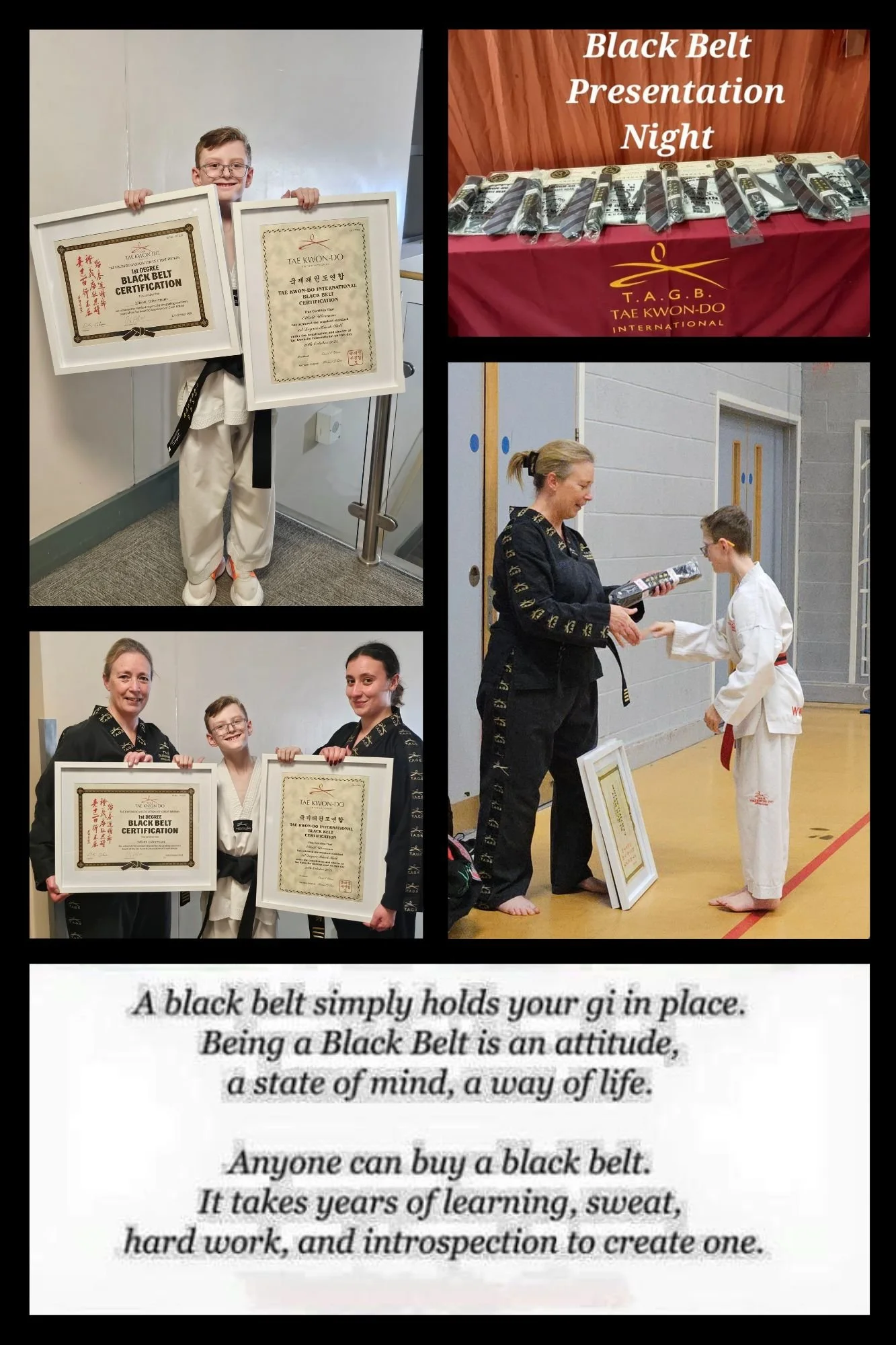 The white swan we use as a representation of the many people that start Taekwondo and the numerous white belts and beginners. However, every so often you see a rare black swan. The black swan represents the one in many that displays perseverance and determination to achieve their black belt.